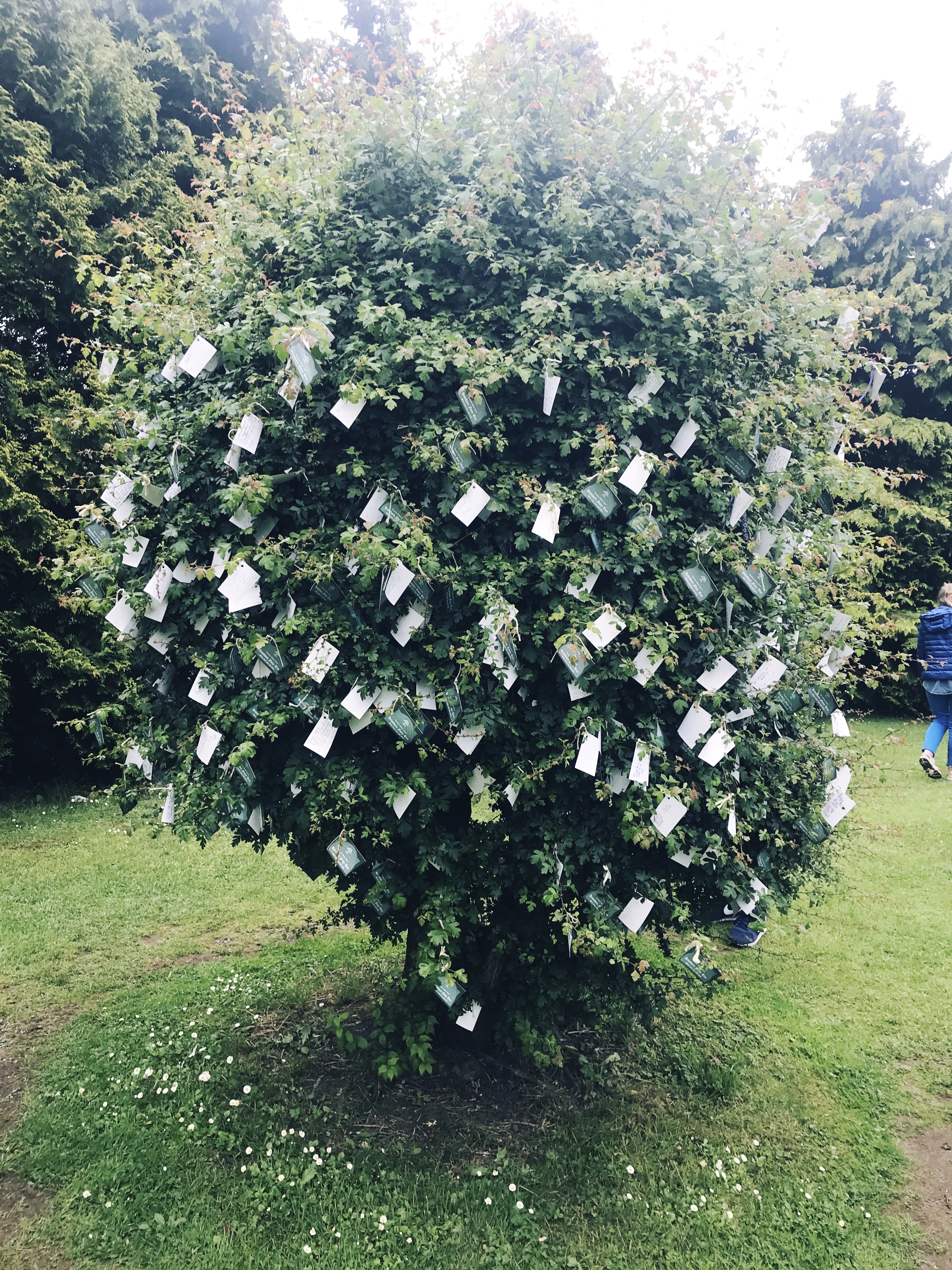 We drove home via Killarney without realising there was an international tatoo convention and motor bikers thing going on – so it took a little longer than expected as the traffic was a little thick. We had another great (Thanksgiving for Our Lives) meal at Tom Crean’s that night. The staff were great craic and the food was just terrific. The next day – our last – was spent pottering about Kenmare enjoying a great breakfast at Rookery Lane Cafe, visiting the sculpture show in the Butter Market and also the Kenmare Stone Circle at the top of Market Street. The Stone Circle, known as The Shrubberies, was built about two thousand years ago and is just awe inspiring – you can also leave a wish on the White Hawthorn Tree in the grounds which, as you know, will be picked up by the Little People.